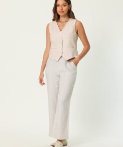 Women’s Linen Vest Sleeveless Button Down V Neck Formal Business Waistcoat