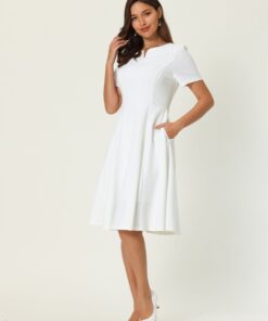 Women’s Office Sweetheart Neck Short Sleeve Work A-Line Dress