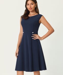 Women’s Sleeveless Dresses Elegant Round Neck Office A-Line Dress