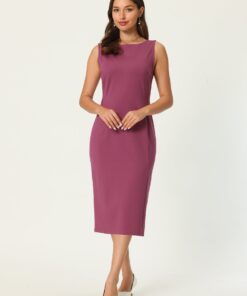 Women’s Sleeveless Sheath Dress Boat Neck Casual Office Pencil Dresses