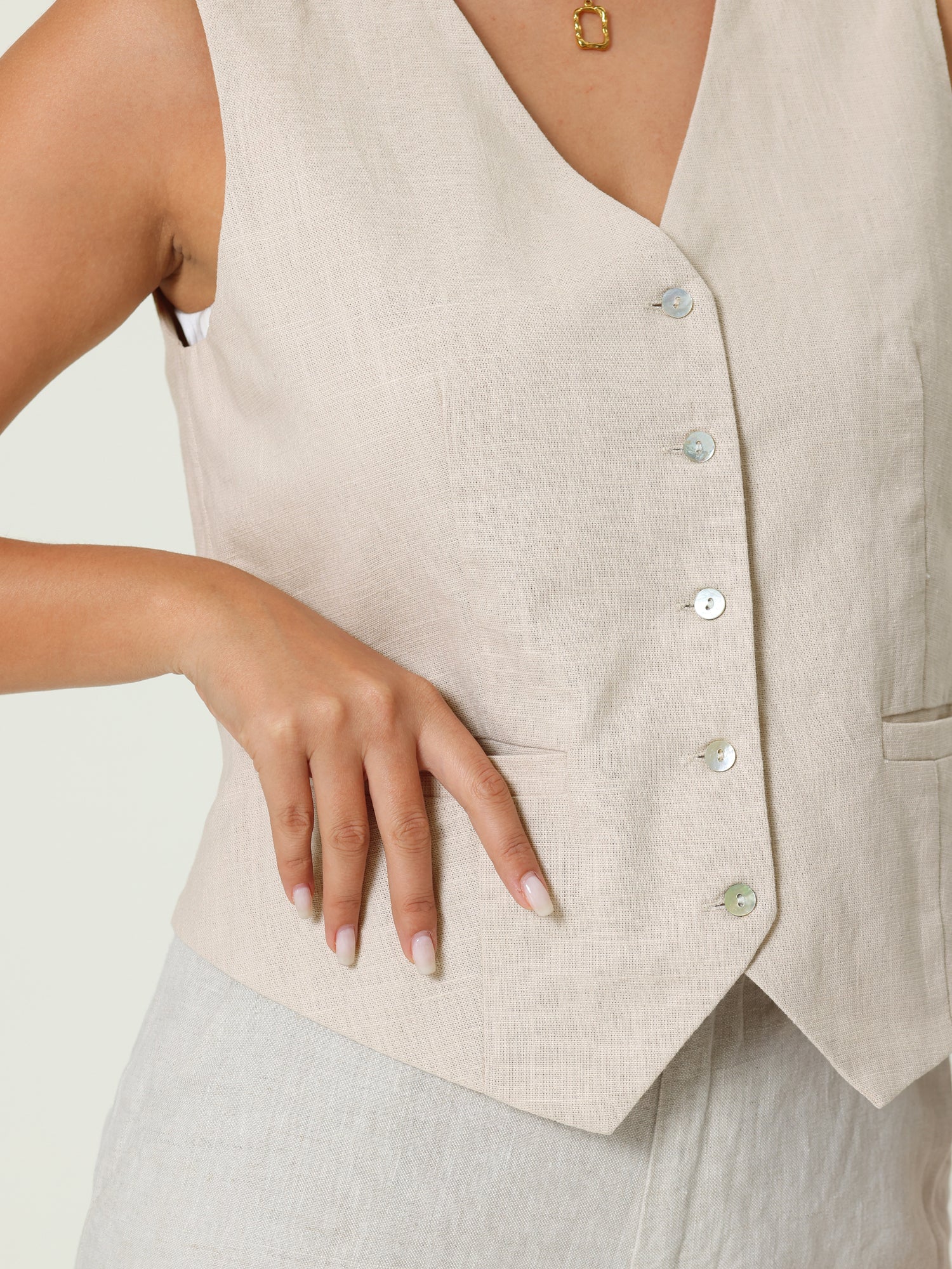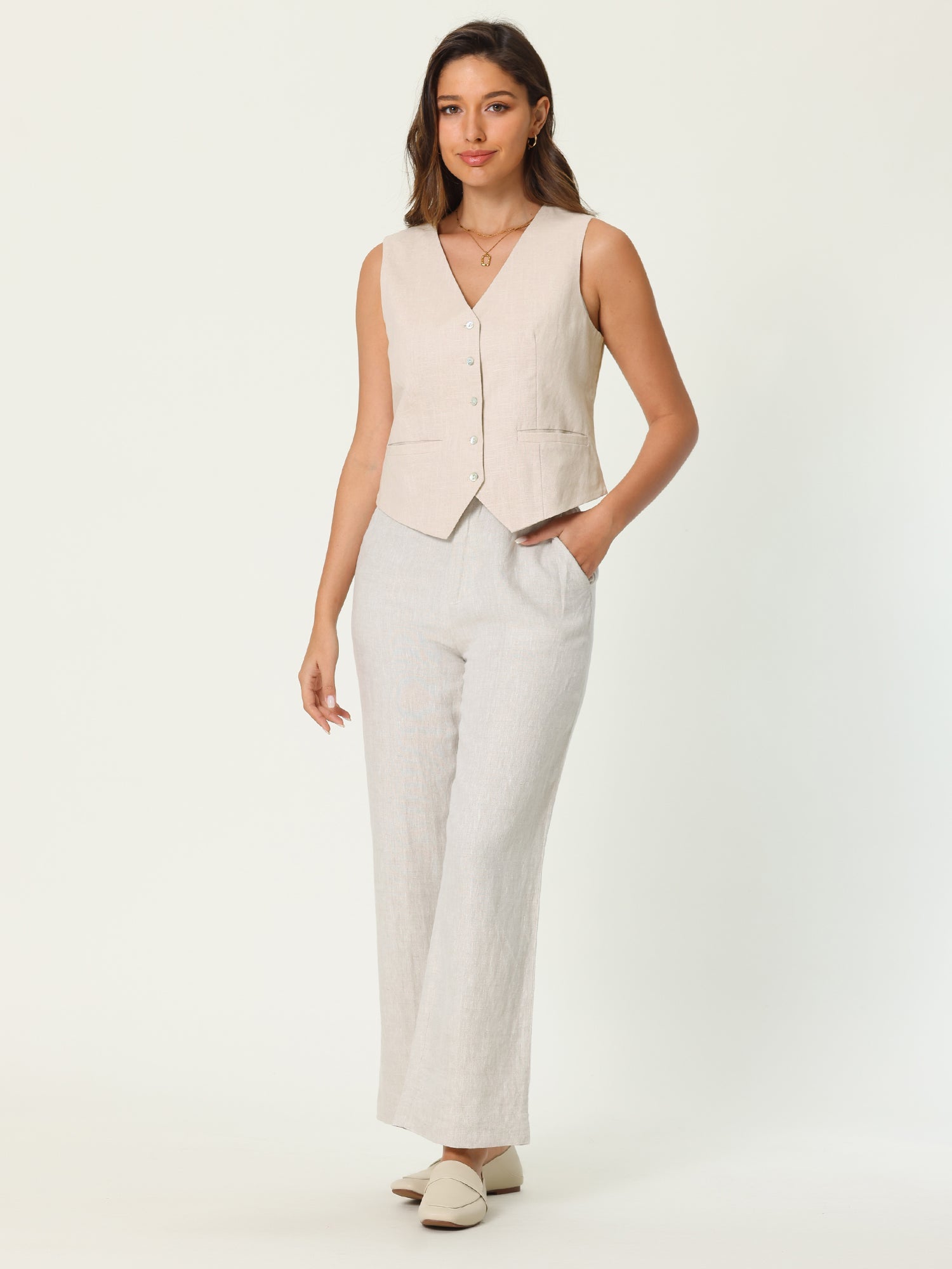 Women’s Linen Vest Sleeveless Button Down V Neck Formal Business Waistcoat