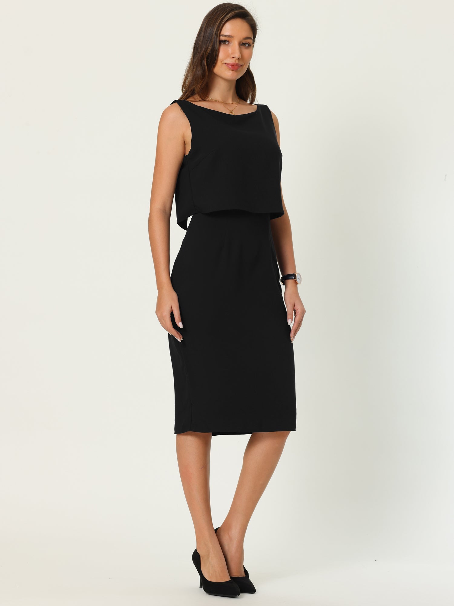 Women’s Office Sheath Dresses Layered Sleeveless Work Pencil Dress